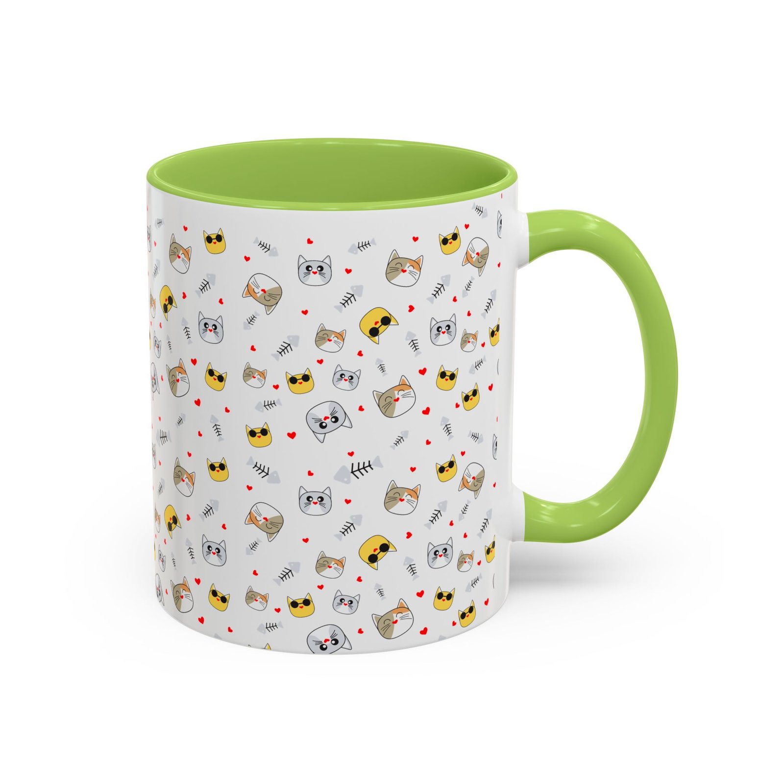 – White ceramic body with colored interior and handle for high-contrast styling.